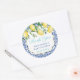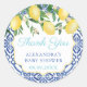 Gracias pegatinas por cualquier evento (mostrado aquí para un Baby Shower pero todos los campos de texto son personalizables). El diseño se compone de limones acuarelas con un fondo de azulejos azules y blancos.