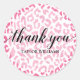 Pegatina Redonda Gracias Leopardo blanco rosado de texto