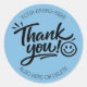 Pegatina Redonda «Gracias» moderno con letra a mano y cara sonrient