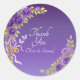 Pegatina Redonda Gracias Novia, Groom Nombra Flores Malvas