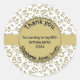 Pegatina Redonda Gracias: Patrón de números dorados y blancos en el