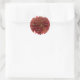 Este es un pegatina de Gracias con una dalia roja, naranja y amarilla. El pegatina es un pequeño redondo clásico de 1½ pulgadas (hoja de 20).