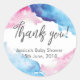 Gracias pegatinas con detalles personalizados para sus favoritos de fiesta, con fondo de color azul y rosa. También están disponibles diseños de correspondencia.