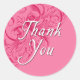Hermosas pegatinas de rosa rosado con un elegante fondo de desplazamiento. El texto dice Gracias. Estos stickers vienen en dos tamaños, y son perfectos para sellar tarjetas de agradecimiento. Si estás enviando notas de agradecimiento por regalos de boda, regalos de ducha de bebé, o cualquier otra razón, estas etiquetas harán que tus sobres parezcan extra especiales.