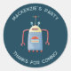 Diseño de robots retro cursi de los años 50 en un fondo oscuro. Cambie el nombre y el texto superior e inferior para personalizar. Perfecto para las bolsas de regalo para agradecer a los huéspedes de su fiesta.