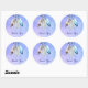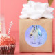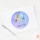 Pegatina Redonda Gracias, plumas acuarelas en morado azul