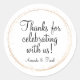 Pegatina Redonda Gracias por celebrar con nosotros la mancha de oro