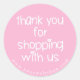 NewParkLane - pegatinas rosas con la cita 'Gracias por ir de compras con nosotros' en una tipografía blanca con letras tipográficas. Todas las letras tengo corazones en lugar de puntos. Agregue su propio nombre u otro texto en las plantillas de texto fáciles de usar, para un diseño personalizado y elija el color de fondo de su gusto. Un diseño perfecto para empaquetar tus artículos desde tu tienda web o pequeña empresa. También disponible en tipografía negra. Proteja esta colección para ver los elementos coincidentes. ¿Tienes deseos de diseño personal específicos? ¡Siéntete libre de contactarme!