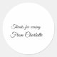 Pegatina Redonda gracias por venir mensaje de texto nombre