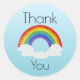 Estos adorables pegatinas de agradecimiento tienen un fondo de gradiente azul bebé. Hay un arcoiris purpurina con nubes blancas en el centro del pegatina con la palabra "Gracias" impresa encima de él en una elegante letra negra, y la palabra "Tú" impresa debajo de ella. Puede personalizar el pegatina y agregar su propio mensaje personalizado, presupuesto, iniciales o nombre. Este es un diseño súper alegre que es adecuado para una variedad de ocasiones. El diseño colorido y acogedor hará sonreír a cualquiera. Perfecto para quien ame los arcos de lluvia, las cosas coloridas, o simplemente disfrute esparciendo alegría y mostrando agradecimiento!