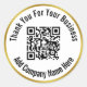 Estas gracias por sus pegatinas de negocio tienen un código QR en el centro. Además, hay dos líneas de texto negro que puede editar para mostrar un mensaje personalizado. (Recuerde introducir su URL para que el código QR funcione correctamente.) Estos elegantes pegatinas tienen texto negro sobre fondo blanco. El borde de oro falso (no Relieve metalizado) es una representación artística.
