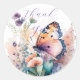 Romántico naranja de verano y flores violetas con mariposa gracias pegatinas redondos con nombre y texto personalizable para regalos elegantes y de moda!