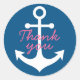 Pegatina Redonda gracias rosa al ancla blanca en azul