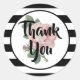 Rosa con rayas blancas y negras, rosa vintage descolorido, gracias pegatinas. Estos son bonitos para sellar boda o ducha de bebé, como nota de agradecimiento.