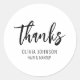 Gracias Simple Moda Escritura A Mano Pegatina Redondo Clásico Blanco Negro. Personalice con su nombre y título personalizados.