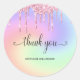 Pegatina Redonda Gracias tipografía goteando rosa purpurina oscuro
