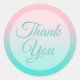 Fondo oscuro de gradiente rosa y turquesa suave con una superposición de círculo blanco. Personalizable "Gracias" mensaje de texto en una fuente moderna verde azulada de caligrafía fluida. La opción de espaciado de línea establecida para este diseño se puede modificar. Un bonito oscuro gracias pegatina por sus invitados. Bodas de Ombre favorecen a los pegatinas.