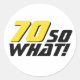 Gracioso 70 así que qué Pegatina de la cita 70 de cumpleaños. Perfecto para la persona a la que le encanta reír, el pegatina presenta una cita que dice: "¡70 qué más!" y seguro que le traerá una sonrisa a la cara. El diseño es sencillo pero llamativo, con un audaz tipo de letra negro sobre un fondo blanco. Puedes cambiar la edad.