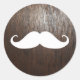 Pegatina Redonda Gracioso bigote blanco sobre fondo de madera de ro