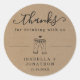 Pegatina Redonda Gracioso Boda de cerveza Gracias / Gracias Pegatin