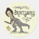 Pegatina Redonda Gracioso Charlotte Bronte Saurus Lector de Libros