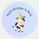Pegatina Redonda Gracioso cumpleaños feliz a vaca Fiesta lunar