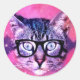 Pegatina Redonda Gracioso Gato De Gafas Kitty