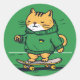 Pegatina Redonda Gracioso Gato De Patinaje En Skateboard