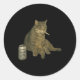 Pegatina Redonda Gracioso Gato Humo Meme Cigarrillo Gatito Beber B