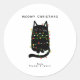Pegatina Redonda Gracioso Gato Negro Envuelto En Luz De Navidades
