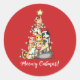Pegatina Redonda Gracioso Meowy Catmas Cats Árbol de Navidad