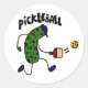 Pegatina Redonda Gracioso Pickle Jugando Pickleball