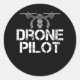 Pegatina Redonda Gracioso piloto de drones para volar en drones