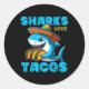Pegatina Redonda Gracioso tiburón mexicano comiendo tacos comida ti