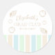 Grad club beach party with cabana stripes in shades of mint green, coastal blue and sandy brown with seashells.