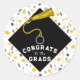Pegatinas, sellos para sobres y etiquetas de regalo creativas para la graduación con tapón negro clásico con tassel de oro artístico sobre fondo de confeti. Editar texto para añadir su nombre y el año de clase superior.