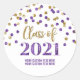 Pegatina Redonda Graduación 2021 de Confetti Purpurina de oro morad
