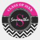 Pegatina Redonda Graduación Chevron Monograma Rosa caliente y Negro