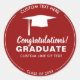 Pegatina de graduación en el color de su escuela con una tapa de grado blanco y espacio para 4 líneas de texto personalizado. Añade tu nombre escolar, nombre de graduación, felicitaciones, etc. Cambie fácilmente el color de fondo para que coincida con el color de la escuela, sólo tiene que hacer clic en el personalizar y desplazarse hasta el selector de color. Perfecto para fiestas de graduación, invitaciones, bolsas de tratamiento, etc.