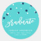 Pegatina Redonda Graduación de Confetti azul turquesa