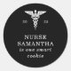Pegatina Redonda Minimalista de Graduación de Enfermería Galleta Inteligente Caduceo Negro.