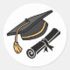 Pegatina Redonda Graduación de la gorra negra y el diploma