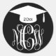 Pegatina Redonda Graduación de monograma de escritura blanca negra