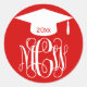 Pegatina Redonda Graduación de monograma de escritura roja Wt Vine