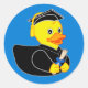 Pegatina Redonda ¡Graduación del Duque de caucho! Fondo azul