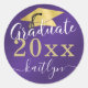 Pegatina Redonda Graduación del Shimmer Metálico Script Purple Gold