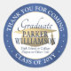 Pegatina Redonda Graduación Gracias Cepillado Blanco Azul y Oro