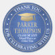 Pegatina Redonda Graduación Gracias Cepillado Oro Azul y Blanco