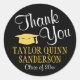 Pegatina Redonda Graduación Gracias Script Black and Gold Yellow