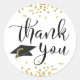 Pegatina Redonda Graduación Gracias Script Black Gold Confetti